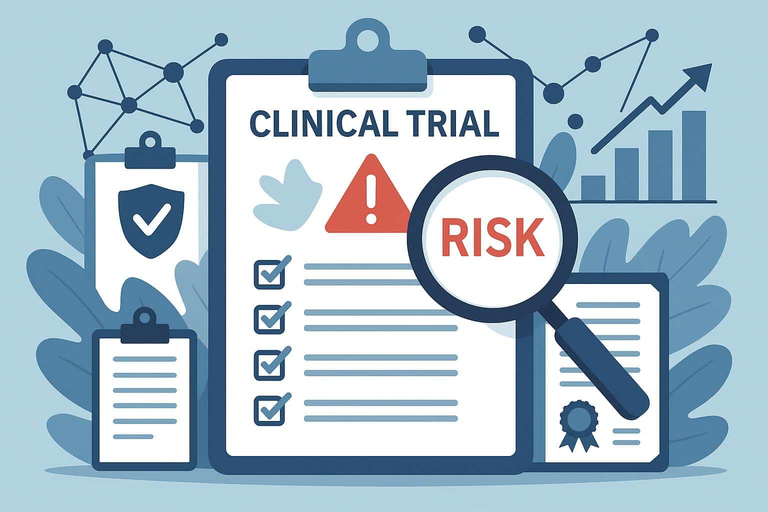 Clinical trial risk management concept with structured oversight elements and medical research tools